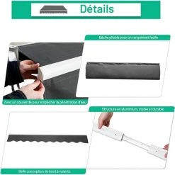 GOPLUS Store Banne Auvent Manuel Rétractable Avec Manivelle En Aluminium Et Polyester, Imperméable, Résistant Aux UV, Pour Terrasse, Bistro, Balcon, Imperméable,300X250CM (Gris-Blanc)