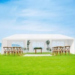 GOPLUS 3x9M /3x6M Tonnelle Tente De Jardin Avec Fenêtres,Tente De Réception Protection Contre Soleil Et Pluie,Chapiteau Gazebo Pour ?vénement Bière Fête Camping(3X9M, 8 B?ches)