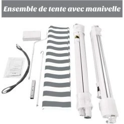 GOPLUS Store Banne Auvent ManuelRétractable Avec Manivelle En Aluminium Et Polyester, Imperméable, Résistant Aux UV, Pour Terrasse, Bistro, Balcon (250x200CM, Gris-Blanc)