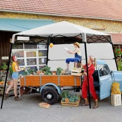 GOPLUS 181x181x210cm Tonnelle De Jardin Pliable,Tente Pliante Avec Hauteur Réglable, Popup-Pavillon Chapiteau De Reception De Jardin Avec Cadre Robuste, Tente De Fête Avec Sac De Transport (Blanc)