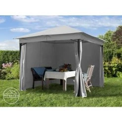 INTENT24.FR Tonnelle De Jardin 3×3 M Env. Env. 180g/m² Pavillon Avec Bâche De Toit Imperméable Tente De Jardin Avec 4 Bâches De Côté Gris Clair Tente De Réception Env. 6×6 Cm Profil – Gris