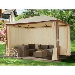 INTENT24.FR Tonnelle De Jardin 3×4 M Design En Optique Bois Toit En Polyester D’env. 220g/m², 4 Parois Latérales Champagne – Champagne