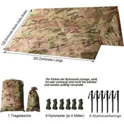 Kartokner Tarp Camouflage Anti-Pluie Camping Rain Tente Bâche Portable Ripstop Légèr Imperméable à L’eau Pour Randonnée, Pêche,Pique-Nique, Abri -avec Accessoires Et Sac De Transport