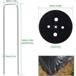 LLOVE Piquets De Jardin, Piquets De Fixation De Jardin, Piquets De Fixation Tente 2,5 Mm D’épaisseur, 15 Cm/2,5 Cm, Pour Fixer Le Tissu De Mauvaises Herbes, Les Feuilles De Sol (50 PCS /4 Rondelle)