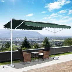 Outsunny Store Double Pente Manuel Rétractable Inclinaison Réglable Métal Polyester Imperméabilisé 3,95L X 2,98l X 2,55H M Vert Foncé – Vert