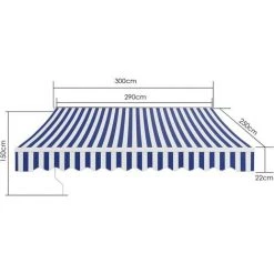 PEDY Auvent Rétractable, Auvent à Bras Repliable Avec Manivelle, Protection Solaire, Anti-UV Et Étanche, En Métal Et Polyester, Pour Cour, Balcon, Restaurant, Café (300 X 250 Cm, Bleu-Blanc)
