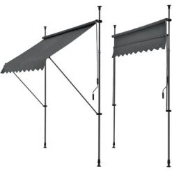 Store Banne Téléscopique Acier Polyester 200 X 120 X 200-300 Cm Gris Ardoise [pro.tec]