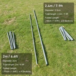 SUPERSELLER Poteaux De Support De Bâche De Tente Pliable Multi-sections Poteaux De Tente De Camping En Acier Pour Auvent De Porche Auvent Auvent De Soleil Support De Voiles D’ombrage – 2,0 Mètres – 2,0 Mètres
