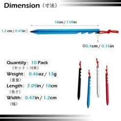 YIENJAOY AGILITY Piquets De Tente 10 Pièces Sardines Camping Piquets De Fixation Léger Avec Sac De Rangement Pour Randonnée Voyage En Plein Air Activités Extérieur Y Design – 18cm – Rouge
