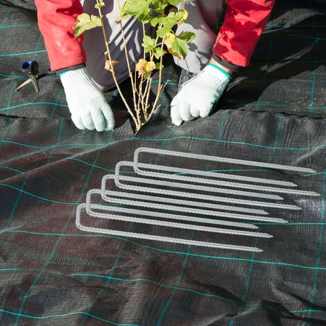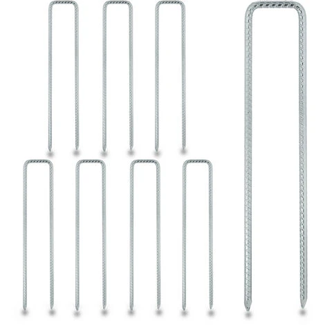 Ce lot de 8 sardines est l’accessoire idéal pour le jardin. Fixez les toisons, les tuyaux d’arrosage et les clôtures solidement dans le sol avec les sardines solides. Les crochets en U se plantent facilement dans la terre grâce aux extrémités en pointe. Utilisez un marteau en caoutchouc pour un enfoncement léger sur un sol dur. Utilisez la sardine en acier flexible aussi comme sardine de tente ou ancre de trampoline. Les piquets robustes en acier zingués assurent aussi la stabilité et la solidité lors de vents forts.