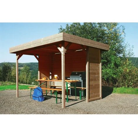 Kiosque en bois “Regensburg” – 6 m² – Dimensions extérieures au sol : 344 x 259 x 223 cm – Bois traité autoclave – Monter et apparier (19 mm)Remarques :