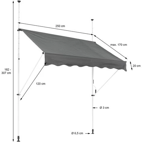 Grâce à son armature en acier robuste et à la haute qualité de sa toile, ce store rétractable manuellement est particulièrement stable et durable. L’angle d’inclinaison des stores peut être réglé individuellement de 0° à 180° et la manivelle pratique permet de les enrouler et de les dérouler facilement. Ces auvents sont le choix idéal pour votre espace extérieur!