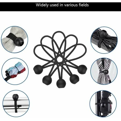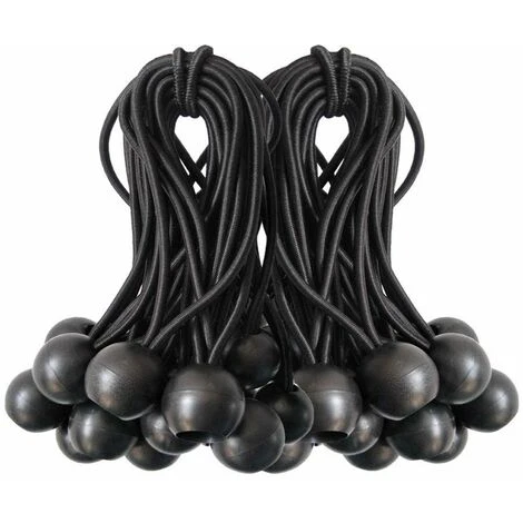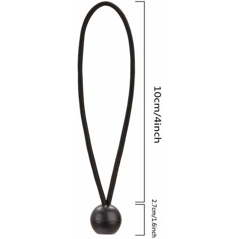 Corde élastique avec boule : noir / blanc, caoutchouc, corde élastique de 10 cm, avec boule de 2,5 cm, durable, résistant aux intempéries.