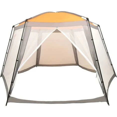 La tente de piscine est un accessoire idéal pour la piscine afin de créer de l’ombre. L’abri peut être utilisé comme protection solaire au-dessus de la piscine ou comme toit pour votre groupe de sièges. La tente de fête est fabriquée en polyester avec revêtement en PA, ce qui la rend résistante aux UV et à l’eau. Avec un cadre en acier fort, la tente d’événements est robuste et durable. Grace aux parois en maille, le pare-soleil est bien ventilé. Elle convient aux piscines rondes d’un diamètre maximal de 500 cm.
