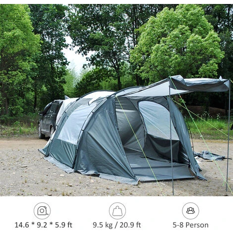 Ce n’est pas seulement une tente, mais aussi un grand auvent. Fabriqué à partir de tissu oxford avec revêtement argenté, bloquant plus de 90 % des rayons ultraviolets ; Revêtement imperméable PU4000mm solide, résistant aux intempéries. Petit volume d’emballage, grande surface développée. Idéal pour le camping, les pique-niques, les fêtes et autres activités de plein air pour 5 à 8 personnes.
