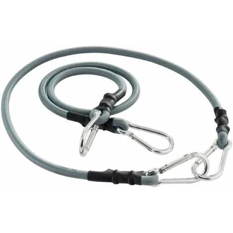 Informations produit: Produit: Tendeur Dimensions au repos: Longueur 70 cm Dimension sous tension: Longueur 1,30 m Diamètre: 8 mm Caractéristiques: Tendeur avec mousqueton anodisé à chaque extrémité Coloris: gris Conditionnement: 2 pièces Marque: Werkapro