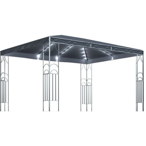 Cette tonnelle présente un design classique et élégant qui conviendra parfaitement comme abri contre le parasol pour les événements en plein air, tels que les dîners, les barbecues, les réunions de famille et d’autres activités. Le toit, composé de 100 % polyester avec peinture PA, vous protège des rayons UV nocifs. La tonnelle est solidement construite en acier résistant et est par conséquent résistante à la rouille et très stable. Des attaches à boucles et à crochets sont également incluses pour faciliter la fixation. La tonnelle peut être facilement fixée au sol avec les accessoires de fixation inclus. Elle est facile à assembler. De plus, la guirlande lumineuse crée une ambiance chaleureuse dans votre jardin lorsque le soleil se couche. Les lumières n’apportent aucune pollution à l’environnement car elles sont chargées par l’énergie solaire pendant la journée. Remarque : ce produit ne doit JAMAIS être utilisé par mauvais temps, tel que vent fort, pluie abondante, neige, tempête, etc.