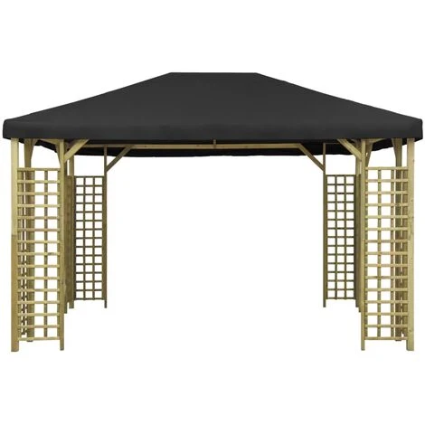 Ce belvédère, au design élégant, fournit l’ombre et l’abri parfait du soleil pour les événements en plein air, tels que les dîners, les barbecues, les réunions de famille, etc. Fabriqué en 100 % polyester avec revêtement en PVC, le toit vous protège de l’éblouissement et des rayons UV nocifs de la lumière directe du soleil. Il est également résistant à l’eau et à la poussière. L’auvent a une construction en bois de pin imprégné solide et robuste avec des détails carrés décoratifs, ce qui le rend solide et accrocheur. Ce cadre est de haute résistance, dureté, stabilité dimensionnelle et résistance à la pourriture. De plus, cet article est facile à assembler. REMARQUE : ce produit ne doit JAMAIS être utilisé par mauvais temps, tel que vent fort, pluie abondante, neige, tempête, etc.