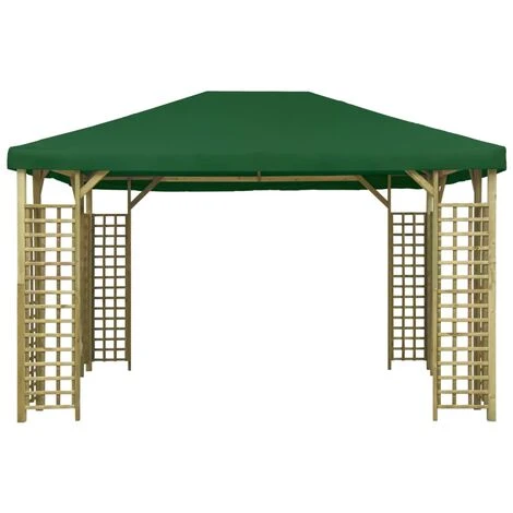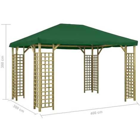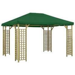 Ce belvédère, au design élégant, fournit l’ombre et l’abri parfait du soleil pour les événements en plein air, tels que les dîners, les barbecues, les réunions de famille, etc. Fabriqué en 100 % polyester avec revêtement en PVC, le toit vous protège de l’éblouissement et des rayons UV nocifs de la lumière directe du soleil. Il est également résistant à l’eau et à la poussière. L’auvent a une construction en bois de pin imprégné solide et robuste avec des détails carrés décoratifs, ce qui le rend solide et accrocheur. Ce cadre est de haute résistance, dureté, stabilité dimensionnelle et résistance à la pourriture. De plus, cet article est facile à assembler. REMARQUE : ce produit ne doit JAMAIS être utilisé par mauvais temps, tel que vent fort, pluie abondante, neige, tempête, etc.