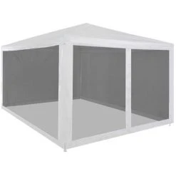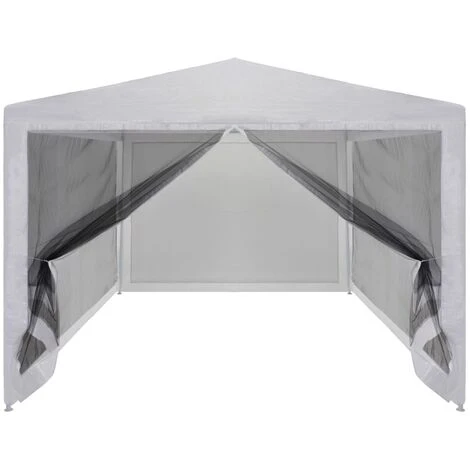 FabriquĂ©e en acier enduit de poudre, cette tente de rĂ©ception est extrĂŞmement durable. Le revĂŞtement de toiture est en polyĂ©thylène de haute qualitĂ©, ce qui le rend rĂ©sistant Ă l’eau et aux UV. La tente dispose de quatre parois latĂ©rales en maille qui vous protègent des insectes nuisibles. L’une des parois latĂ©rales a une entrĂ©e Ă fermeture Ă©clair pour un accès facile. La tente de rĂ©ception est facile Ă installer avec les accessoires de montage inclus.