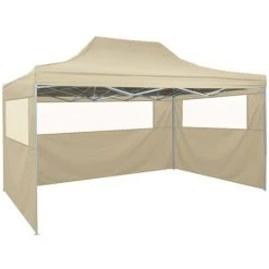 Cette tente pliable sera idéale pour un large éventail d’utilisations en plein air, telles que des spectacles, des mariages, des fêtes, des barbecues, des festivals, etc. Vous pouvez également l’installer dans votre jardin en tant que grand parasol pour votre famille et vos amis. Faite de l’acier très résistant, enduit de poudre, cette tente rétractable est extrêmement durable. Le toit est fabriqué en tissu polyester avec un revêtement PA et est 100 % imperméable à l’eau et aux intempéries. La tente a quatre parois latérales, dont une dispose d’une entrée à fermeture éclair pour un accès facile. Le chapiteau est pliable pour faciliter le rangement et le transport. Les accessoires d’installation tels que les cordes d’attache et les piquets de sol sont inclus dans la livraison et l’assemblage est très facile.