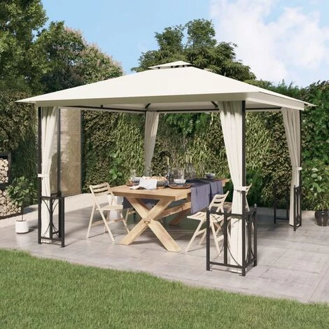- Matériau haut de gamme : le belvédère de jardin est construit avec un cadre en acier enduit de poudre. Il est donc très robuste et durable. Le toit est fait de 100 % polyester avec revêtement PA, qui est résistant à l’eau et peut bloquer les rayons les plus nocifs.