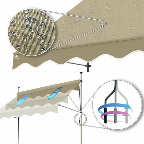 - Grâce à son polyester imperméable de haute qualité et résistant à la saleté avec revêtement PU, le store de jardin est adapté à un usage extérieur.