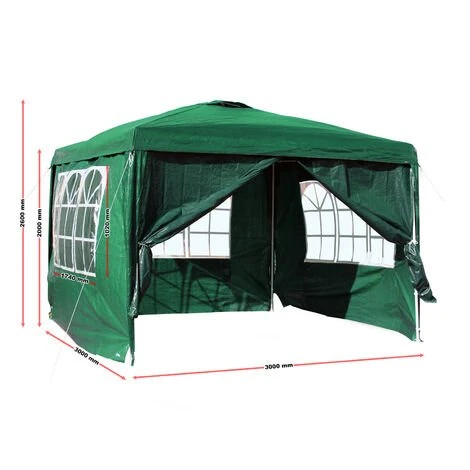 Tonnelle de jardin 3x3m Verte Panneaux latéraux amovibles Pliable