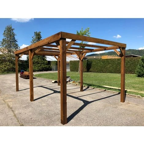 - Pergola : Sa couleur marron vous garantira de se fondre parfaitement dans votre jardin. Son traitement classe 3 et les sections de bois utilisées 115 x 115 mm vous garantissent une pergola qui tiendra dans le temps.