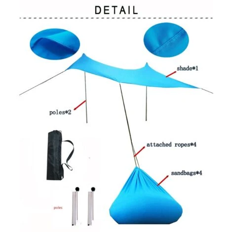 - Idéal pour les couples, la famille, les petites réunions amicales. Amusez-vous au soleil sans les redoutables coups de soleil. De plus, les poteaux en aluminium inoxydable peuvent être pliés pour faciliter le transport et l’installation