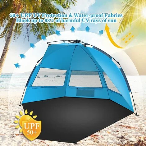 - EASY UP & DOWN: cet abri solaire portable pour la plage peut ĂŞtre incroyablement facile Ă installer et Ă dĂ©monter en une minute seul. Cette tente Ă baldaquin facile Ă monter ne convient ni Ă la pluie ni Ă l’eau, mais juste pour vous fournir, Ă vous et aux enfants, une protection UPF 50+ contre les ombres toute la journĂ©e sur la plage.