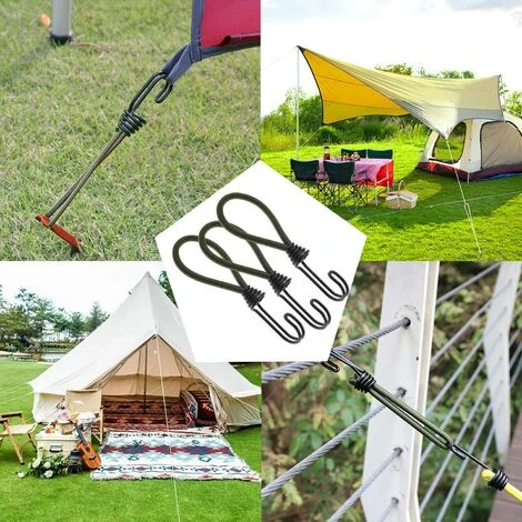 - Taille : vous pouvez obtenir 6 sangles élastiques, la longueur totale y compris le crochet est de 15 cm et le diamètre de la corde élastique est de 6 mm. La corde élastique fiable rend la bâche de tente et la bannière une plus grande stabilité.