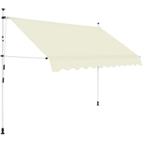 Couleur : crèmeMatériau : tissu avec revêtement en polyuréthane et cadre en acierLargeur : 250 cmProjection maximale : 120 cmHauteur d’installation flexible : 200-300 cmDiamètre de la barre de support : 16 mmLongueur de la manivelle : 125 cmManuelHydrofuge et résistance à la saletéHaute résistance à la lumièreMatériel: Polyester: 100%